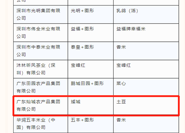 廣東燦城農產(chǎn)品集團有限公司上榜入選2個(gè)產(chǎn)品!